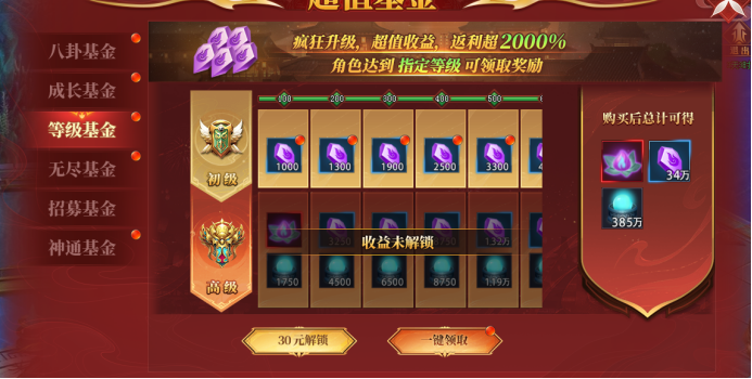 5. 能获得升阶石的活动比较少,开服第二天开启的等级基金和无尽基金可以获得大量升阶石,性价比非常高,不可错过