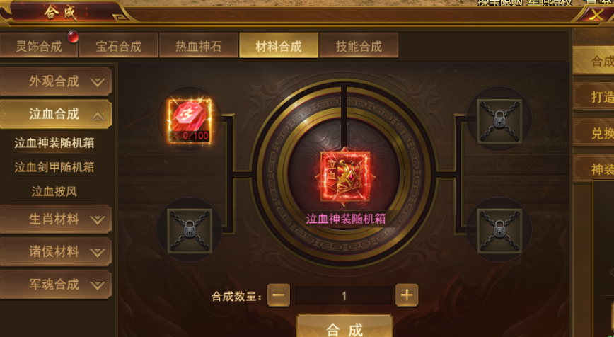 需要注意的是:泣血神装随机箱和泣血剑甲随机箱,合成消耗的神石不是同一种