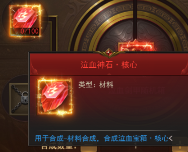 泣血剑甲随机箱合成需要消耗的是泣血神石·核心