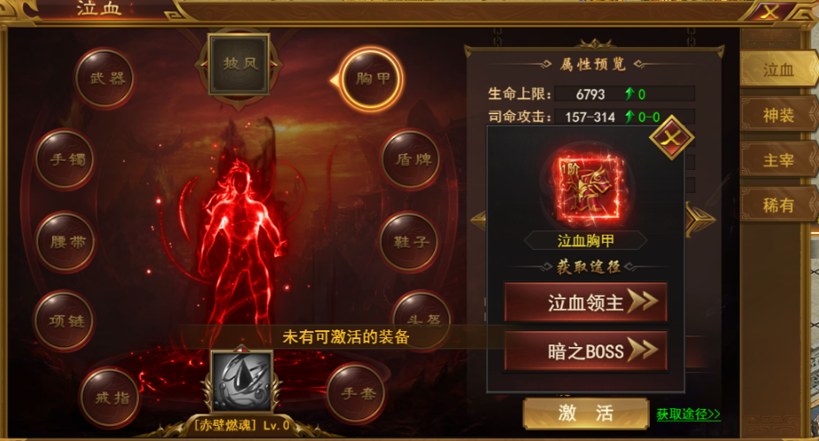 打开后第一个页面就是“泣血神装”装备页面