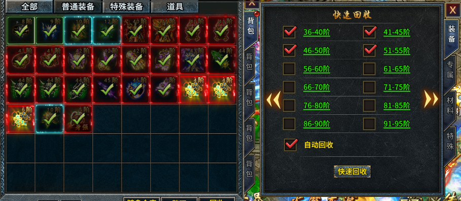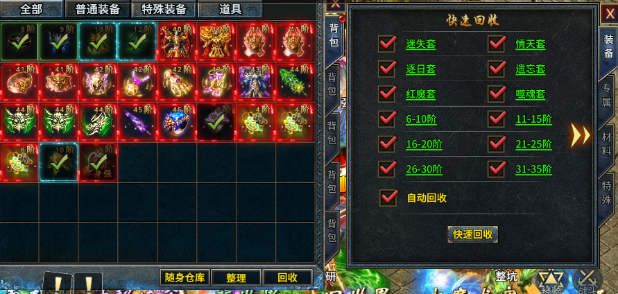 在等级上来后,我们会发现有一部分装备无法回收