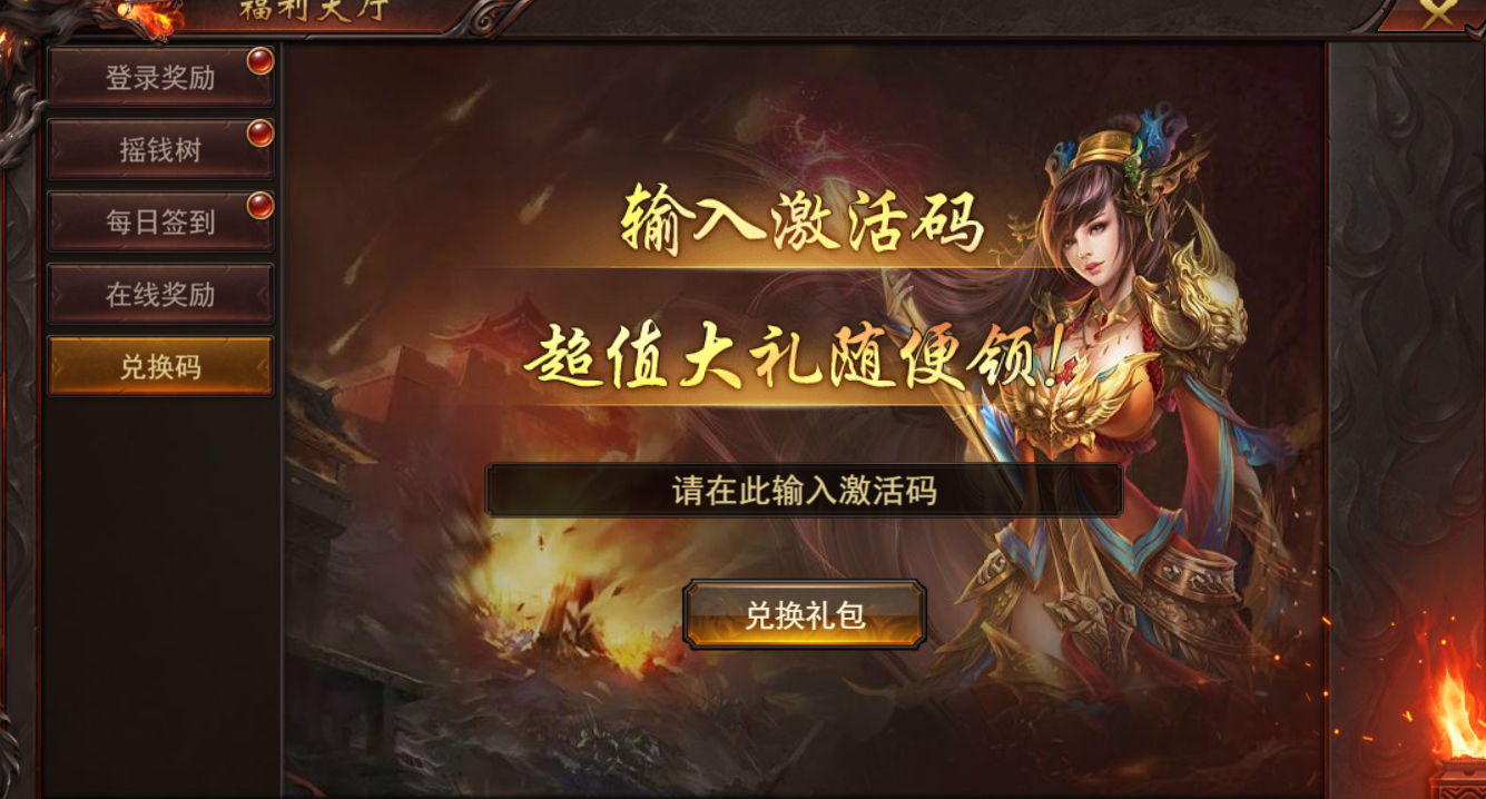 进入游戏后右上角点击福利大厅进行兑换