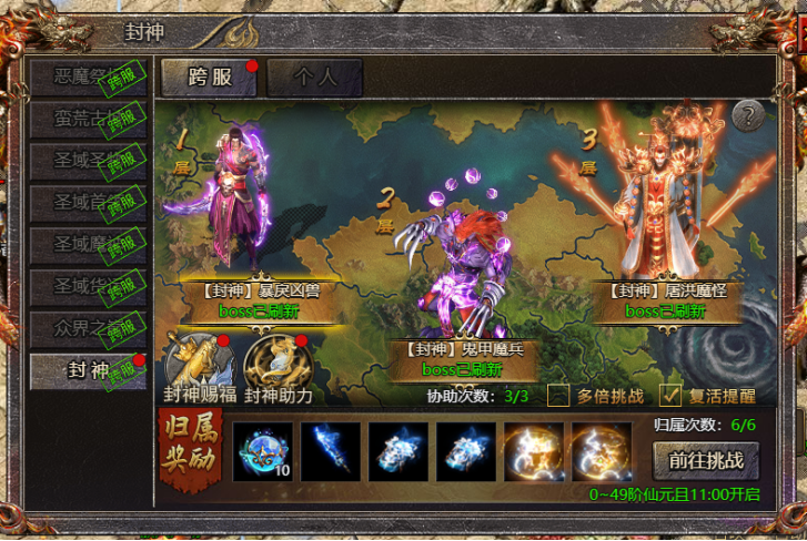 1、开服700天后,可在【神龙圣域-封神】处进入玩法界面