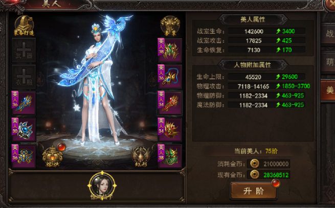 2、美人需要消耗880钻石进行激活,可提升对应的美人属性和人物属性