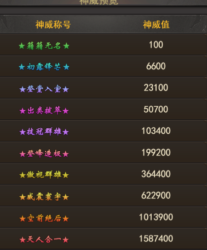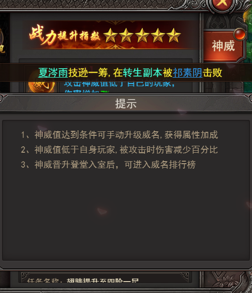 3、攻击神威值低于自身的玩家,伤害可额外增加