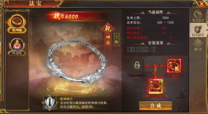 乾坤圈:攻击时有概率触发乾坤神力效果,攻击力大幅提升