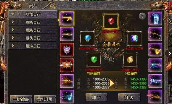 首先,灵石是提升攻击力的第三大系统,它的效果是百分比提升,所以在后期作用非常大。一般来说,灵石的搭配顺序是:攻击力大于混沌力大于物理防御大于魔法防御大于暴击伤害。当然,这也不是绝对的,主要还是要根据实际情况来调整。比如,如果你所在的区服法师比较多,那你就可以多带点魔法防御;反之,如果道士多,那就多带物理防御。至于暴击伤害,除非你是神豪,拥有高等级的至尊项链和圣弑神套,否则作用真的不大,所以可以放在最后考虑。