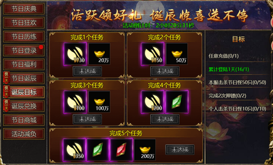【活动内容】:当天完成目标任务,即可领取诞辰目标奖励!