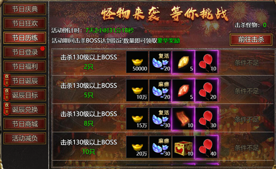 【活动内容】:活动期间,击杀怪物达到指定数量,领取奖励!