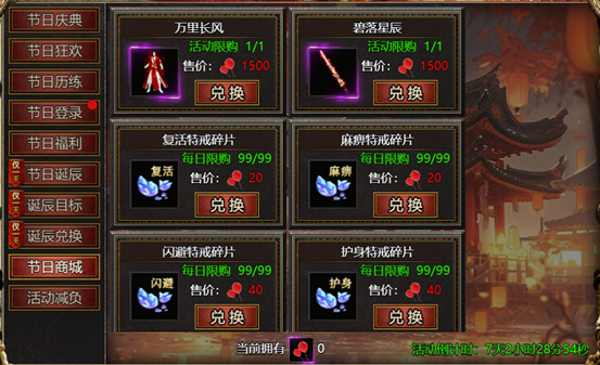 【活动内容】:当天可使用诞辰碎片兑换活动时装、称号及特戒碎片!