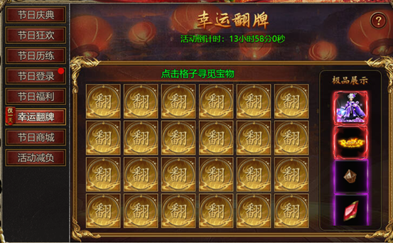 【活动内容】:活动期间,可消耗幸运之力进行翻牌,全部翻完奖励全部获得!