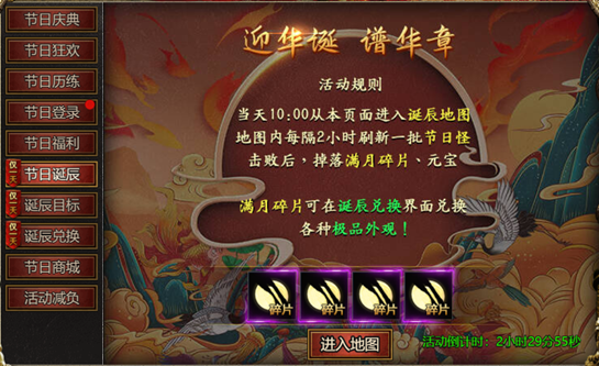 【活动内容】:当天10点开始,进入诞辰地图击败节日怪,收集勋章碎片可在诞辰兑换中兑换活动外观!