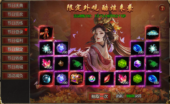 【活动内容】:使用灵符购买限定碎片并进行抽取奖励,抽满奖励全部获得。