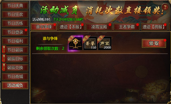 【活动内容】:活动期间,可消耗对应玩法次数直接领取奖励!