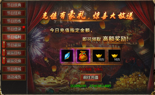【活动内容】:活动期间:每日充值指定金额,即可领取高额奖励!
