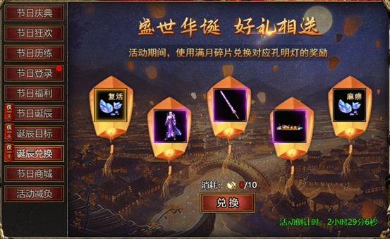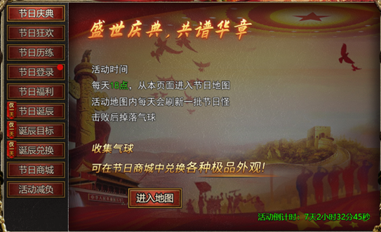 【活动内容】:每天18点可进入节日地图,打节日怪,掉灯笼,换极品外观!