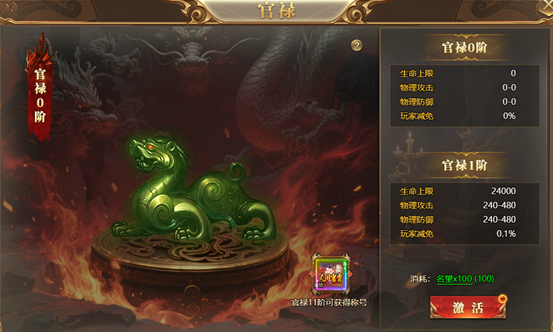 1.  消耗名望升级官禄等阶可解锁限定外显时装;