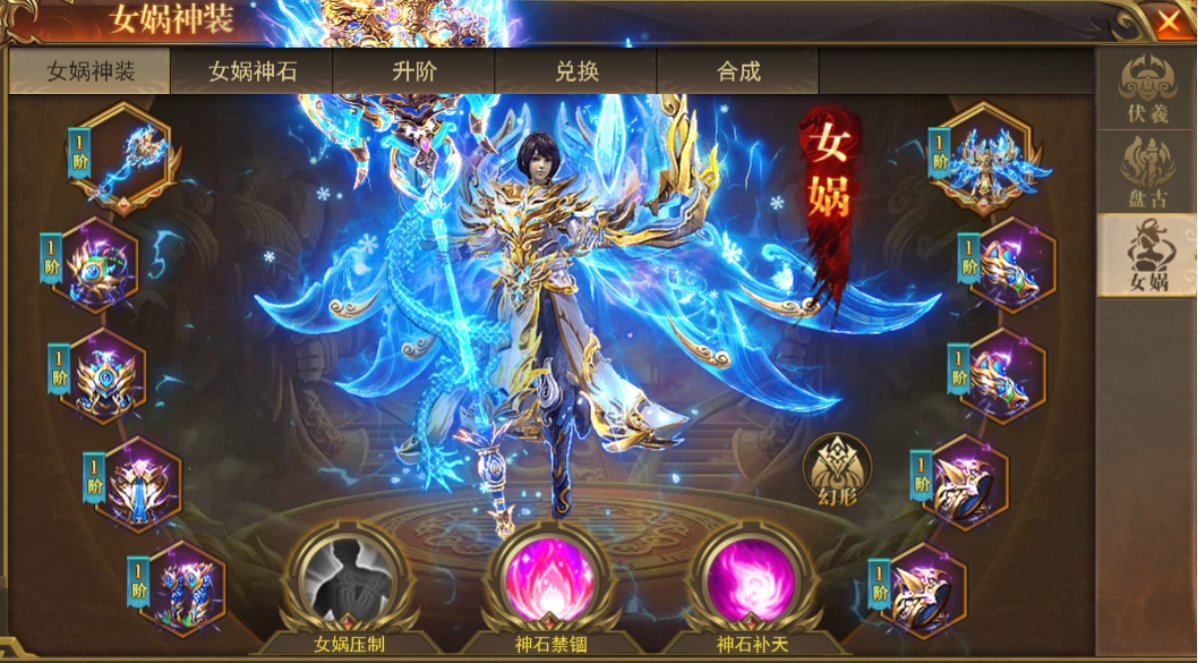 1、新增上古神装-女娲神装,激活女娲之力,获得额外属性加成和压制。