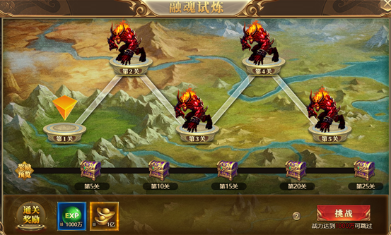 1. 挑战后可获得大量元宝以及经验,每5层还可获得融魂石碎片;