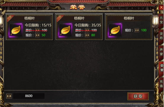 充值奖励:部分充值活动可能会赠送荣誉值作为奖励。