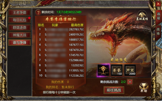 在每天的6点至22点之间,玩家可以进入副本挑战Boss,并统计自己对Boss造成的伤害,在个人伤害总榜中进行排名。每天副本提供两次挑战机会,进入副本会消耗挑战次数,而挑战Boss则可以获得副本奖励。挑战次数在每天的0点时会重置。