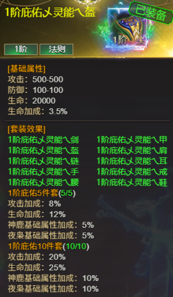 ②英灵装备可在月神、日神、风神、战神四套任意选择